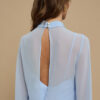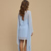 An ethereal mini dress with a layered cape covering the neck and sleeves.