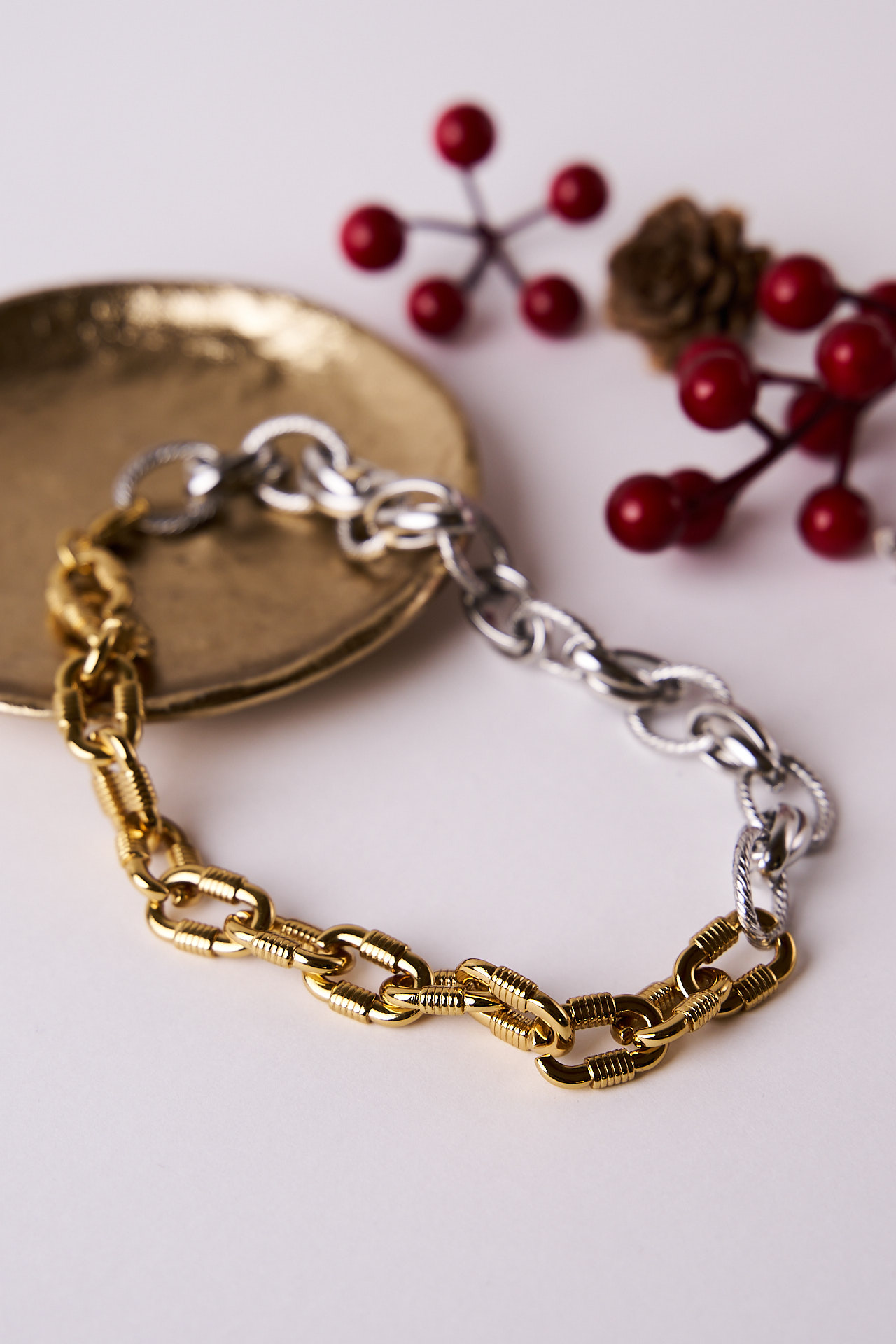 - Κολιέ με συνδυασμό από ατσάλινες αλυσίδες.