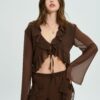 Το PROJECT SOMA Azalea Top κατασκευάζεται από αέρινη μουσελίνα. Cropped top με βολάν και δέσιμο μπροστά.