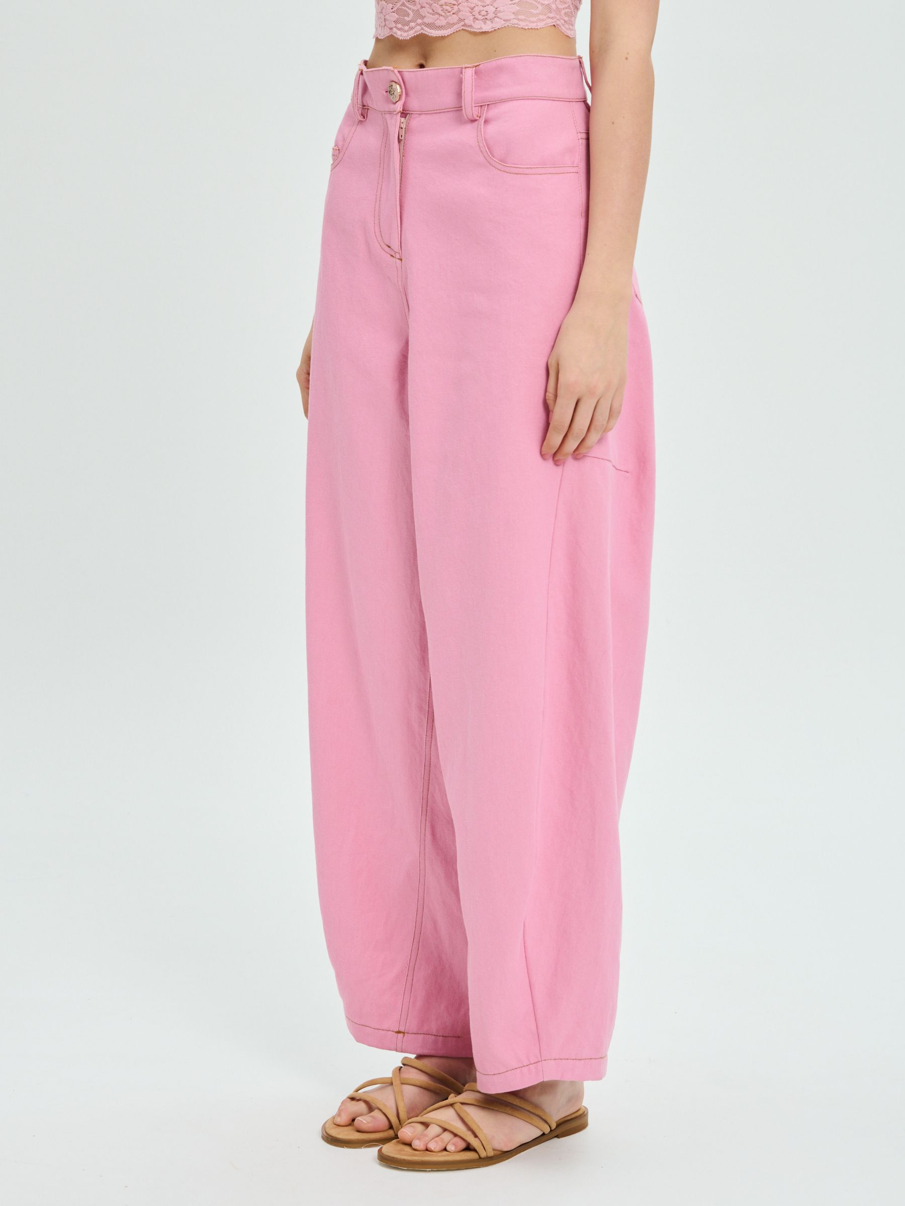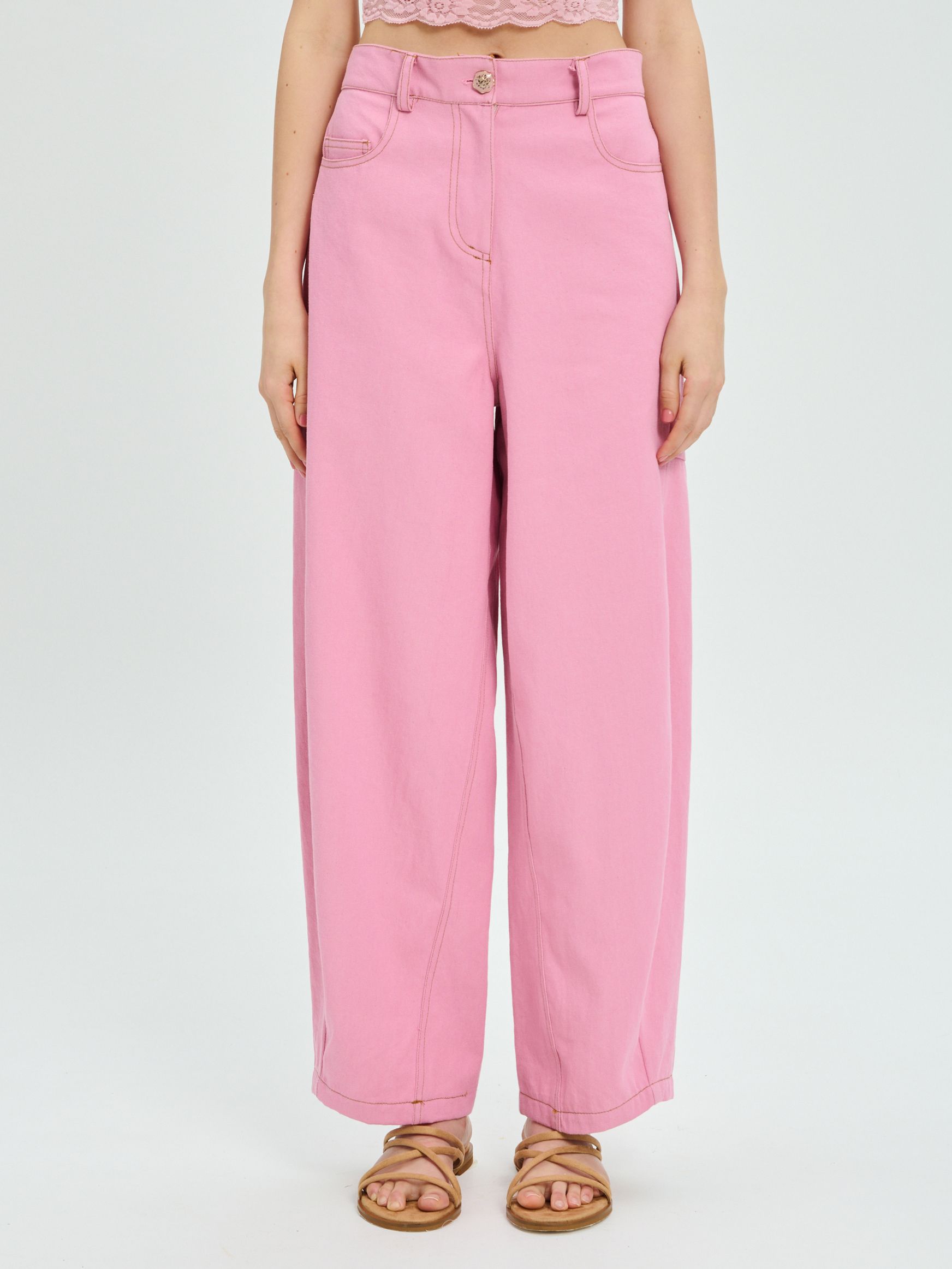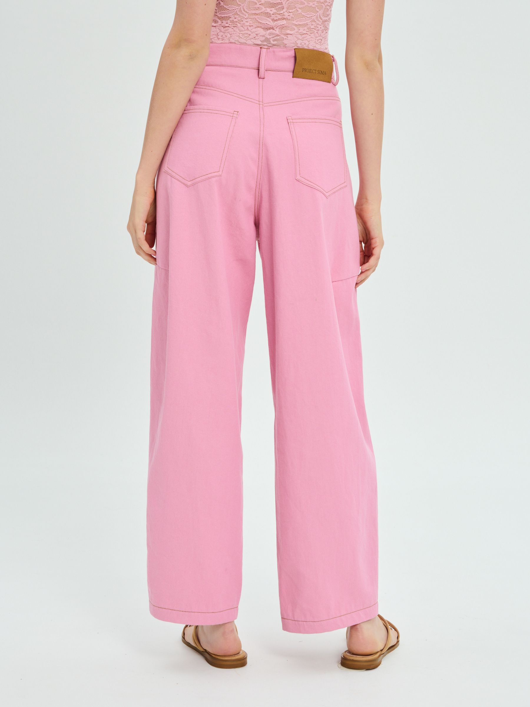 Το PROJECT SOMA Balm Pink Pants κατασκευάζεται από χρωματιστό bull denim ύφασμα. Barrel παντελόνι με διακοσμητικές ραφές.