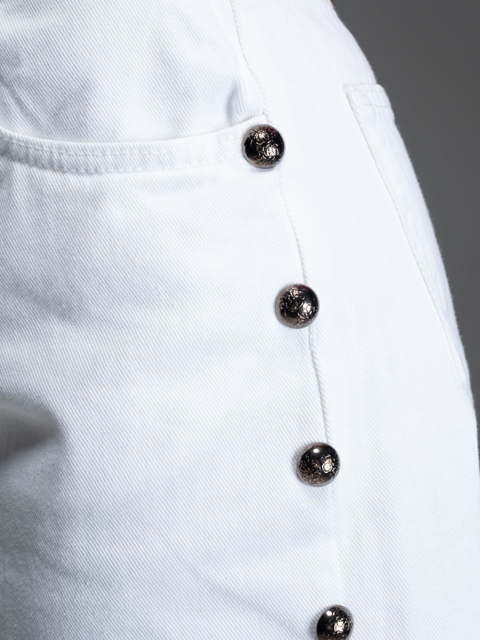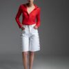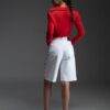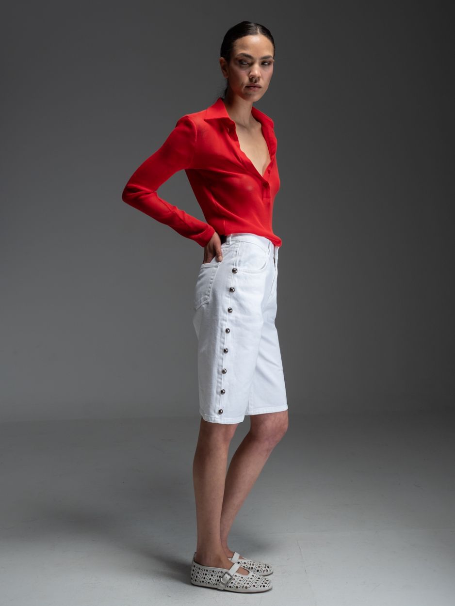 Λευκή denim βερμούδα σε χαλαρή γραμμή με χαμηλό καβάλο, που προσφέρει άνεση και μοντέρνο ύφος.