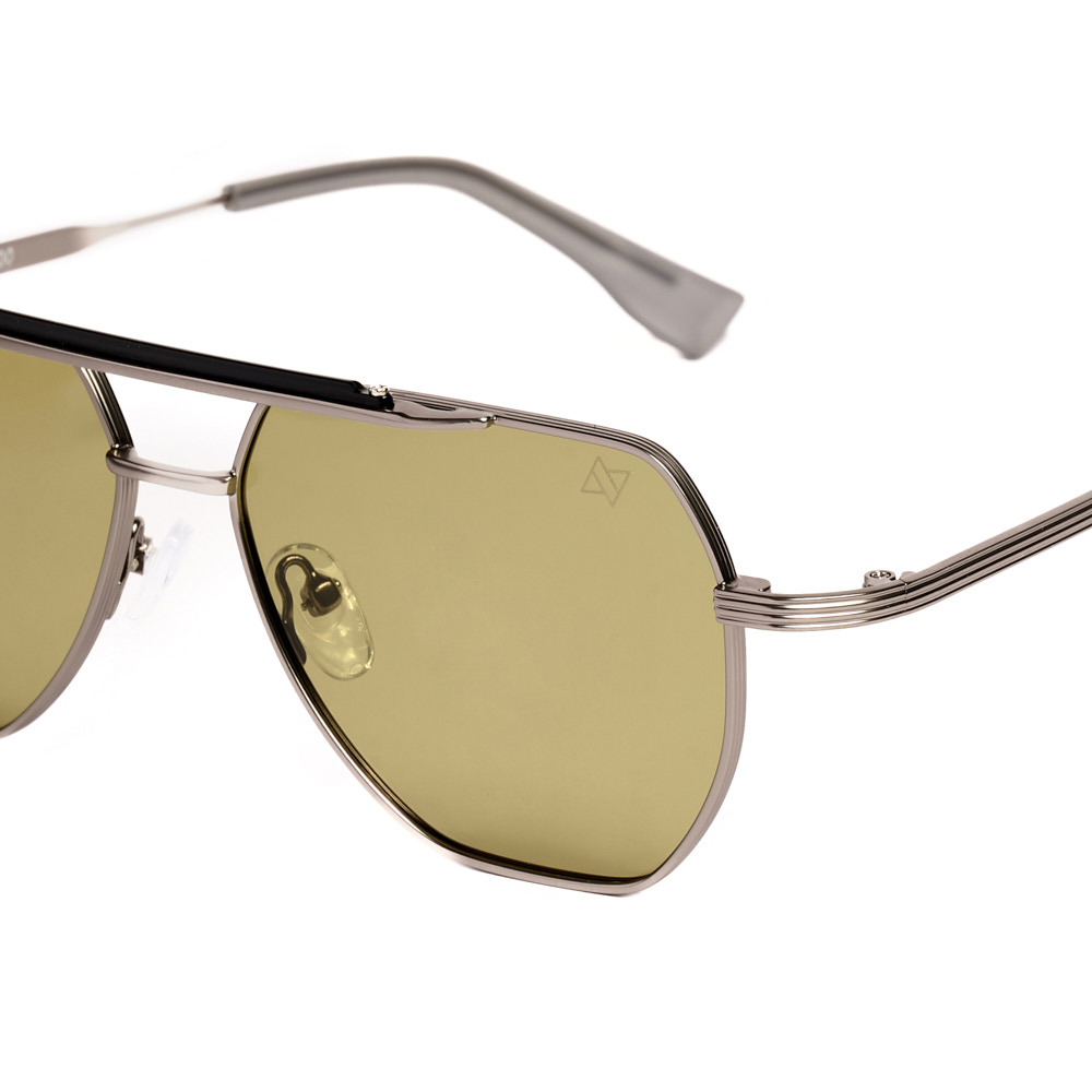 Redefine a classic with these geometric Aviator sunglasses. Crafted with a bold gold metal frame, a sleek black top bar, and olive lenses, they combine timeless aviator style with a modern architectural edge. Lightweight yet durable, they deliver both statement style and premium eye protection.