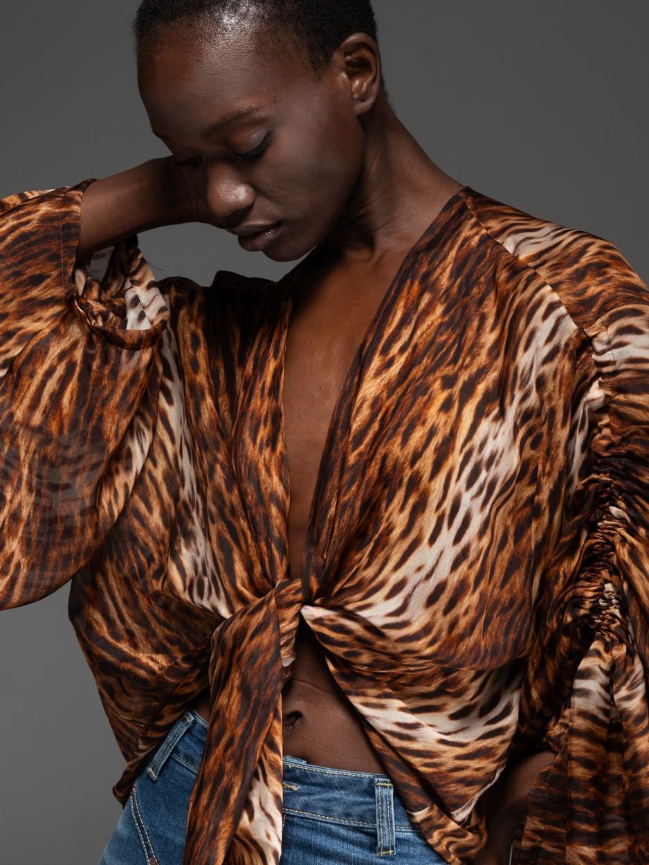 Ξεχωρίζει για το χειροποίητο animal print σε καφέ αποχρώσεις, που δίνει ένταση, δυναμισμό και μία πιο τολμηρή θηλυκή αισθητική.