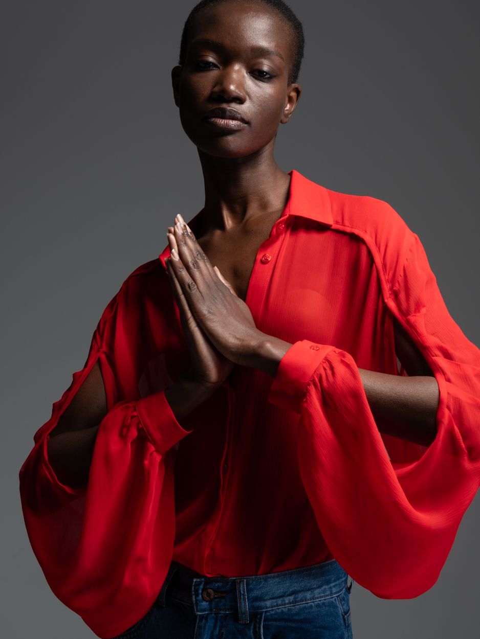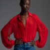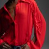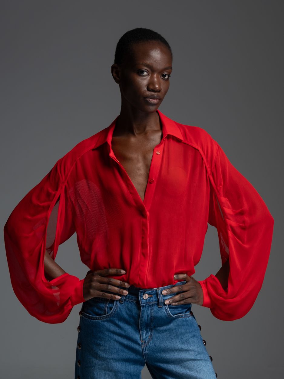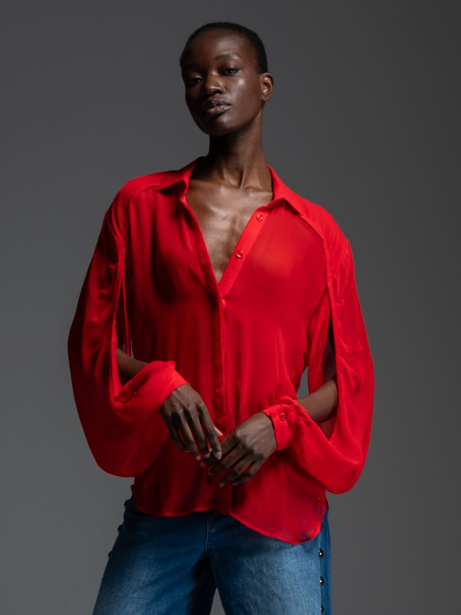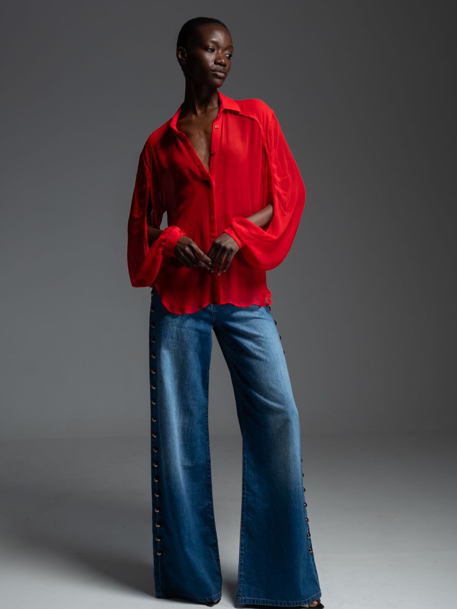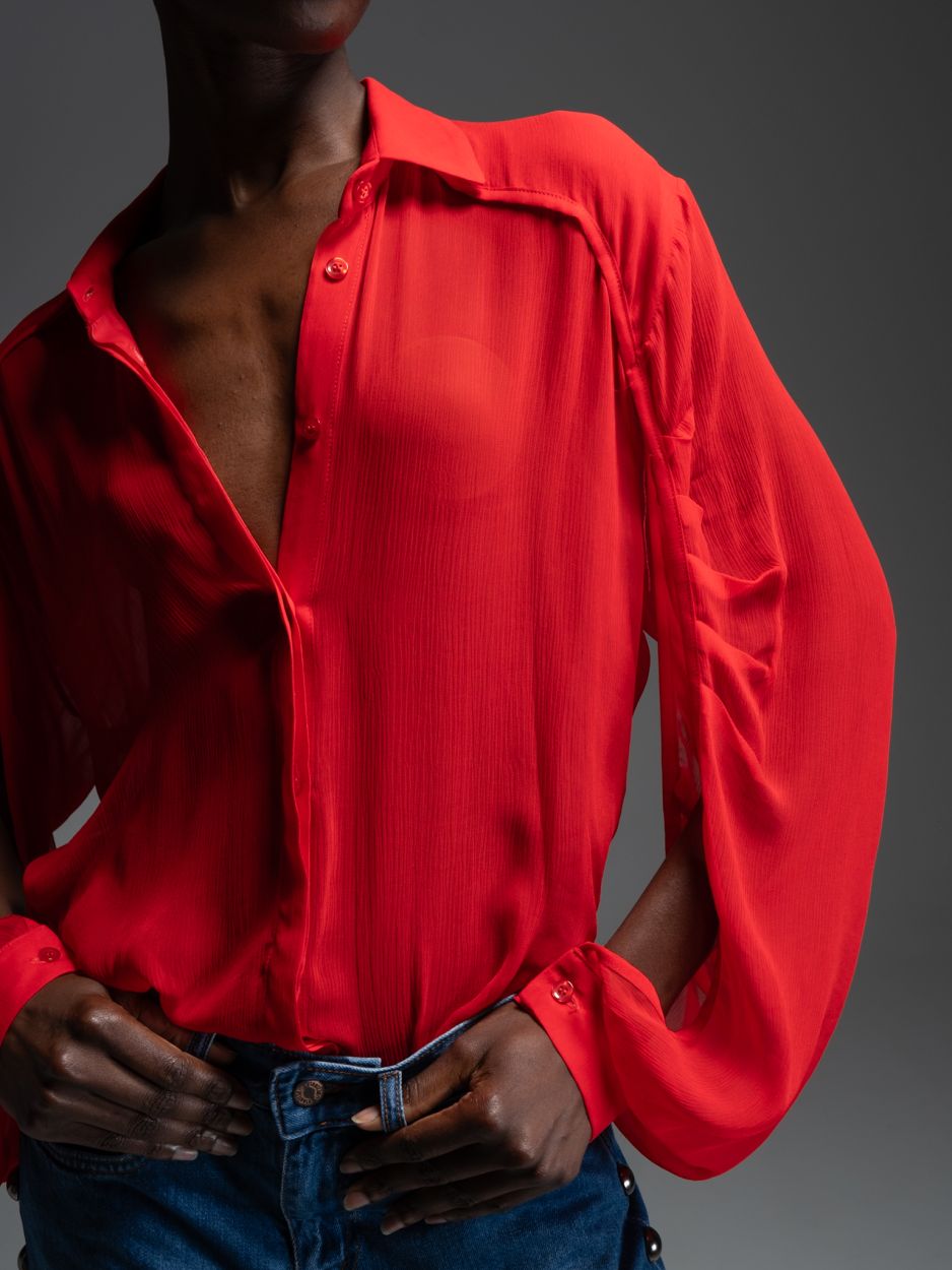Πουκάμισο σε άνετη γραμμή, σε εντυπωσιακή πορφυρή κόκκινη απόχρωση, που χαρίζει ένταση, θηλυκότητα και fashion χαρακτήρα σε κάθε εμφάνιση.