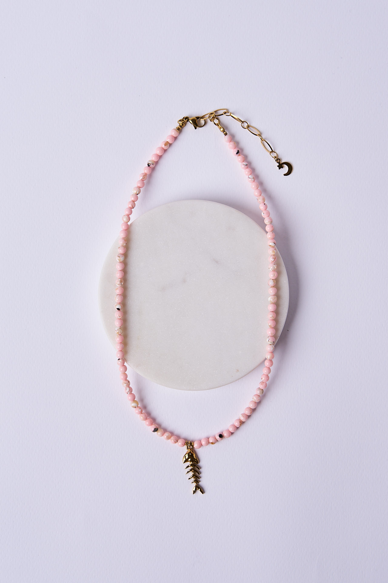 - Κολιέ από ροζ ημιπολύτιμες πέτρες